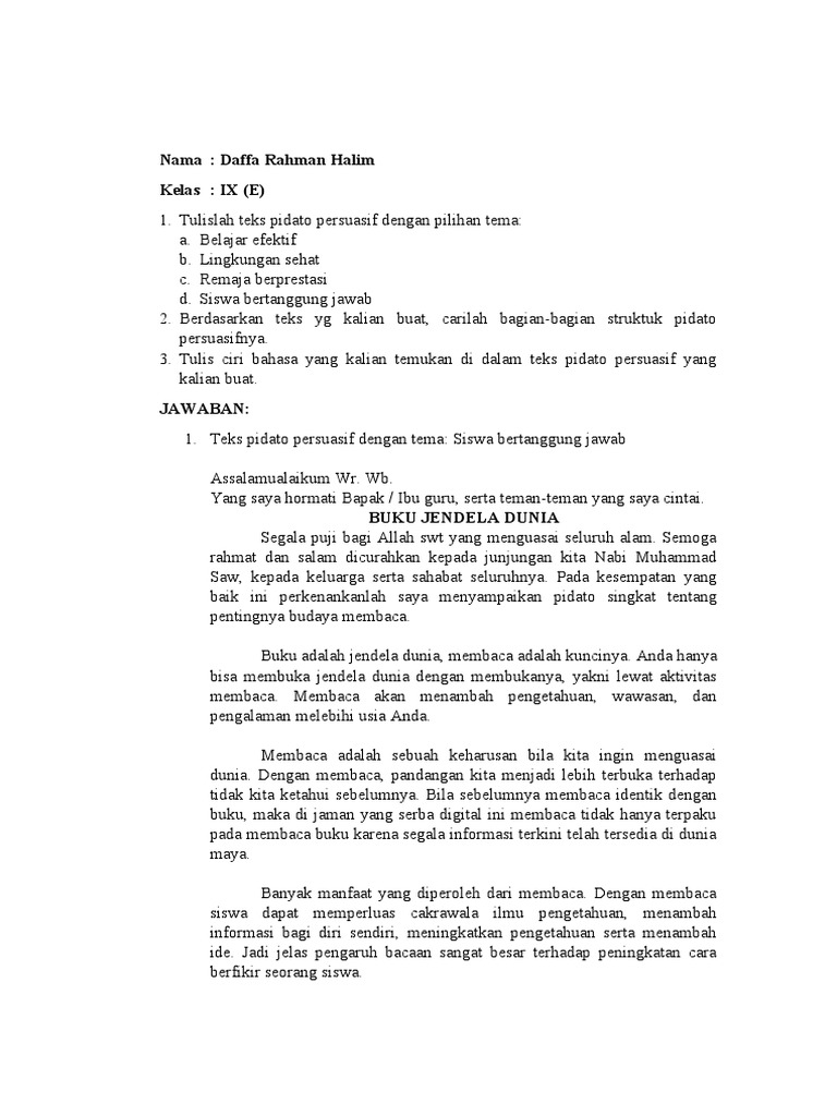 Membantu pekerjaan orang tua di rumah. Such as drug speech speech. Pidato biasanya dibawakan oleh seorang yang memberikan orasi-orasi dan pernyataan tentang suatu halperistiwa yang.