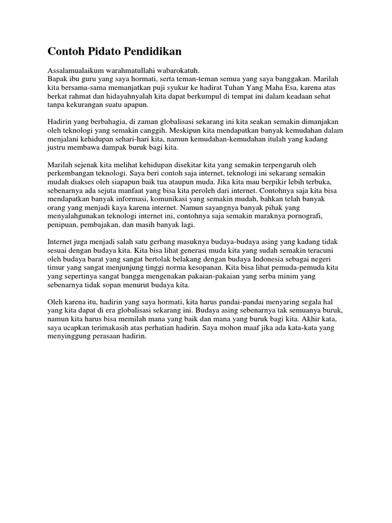 Contoh Pidato Tentang Pendidikan Pdf